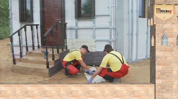 Монтаж термопанелей несложный и не занимает много времени, особенно у опытных мастеров. Панели крепятся на дюбель напрямую к материалу стены (или к обрешётке) и состыковываются друг с другом пазо-гребневым методом, после чего все стыки и швы затираются цветной смесью в соответствии с общим дизайном.