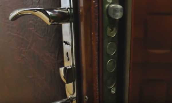 Два Г-образных рычага нажимных ручек соединены со стержнем, проведенным через дверное полотно. Такой механизм позволяет закрывать дверь наиболее плотно. Нажимные модели бывают двух типов: ручки-защелки и ручки на планке.