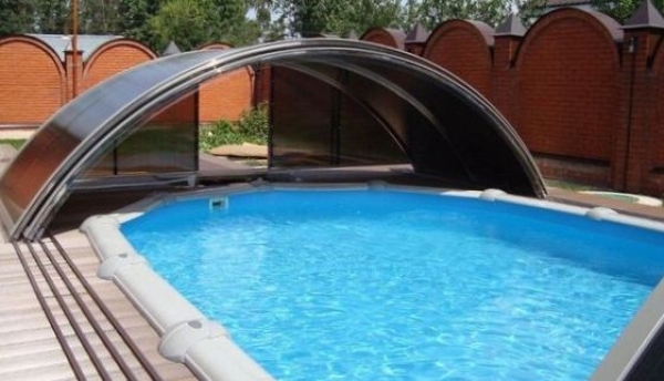 Вы будете удивлены, но покрытий для бассейнов, оказывается, большое количество самых разных, потому к выбору нужно подходить внимательно. В качестве первого варианта сразу же стоит назвать быстровозводимые павильоны — вариант не самый дешёвый, но, стоит признать, смотрится просто великолепно. Такой вариант совершенно точно защищает от пыли, грязи и мусора, да и находиться в таком помещении очень интересно, словно бы вы изолируете себя от мира и погружаетесь в атмосферу водных процедур.