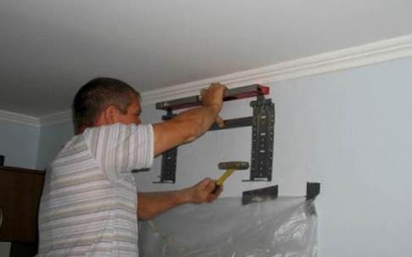 Выполнение сквозных отверстий в стене по отмеченным точкам мест крепления климатической техники с небольшим уклоном вниз, необходимым для удаления конденсата из системы. Для таких работ предназначены буры, которые имеют разную длину и диаметры. После сверления отверстий, необходимо закрепить основание декоративного короба.